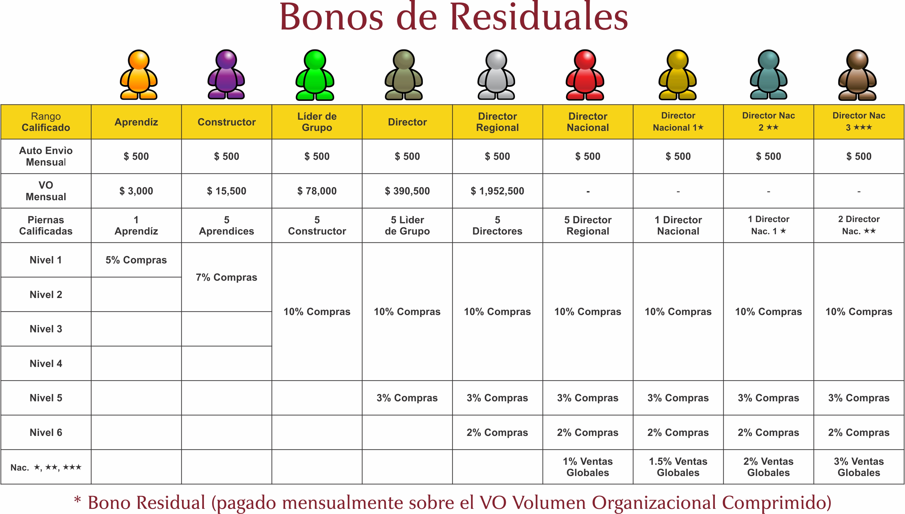 bonos residuales de la primera, segunda, tercera y cuarta generación como se muestra en la siguiente tabla