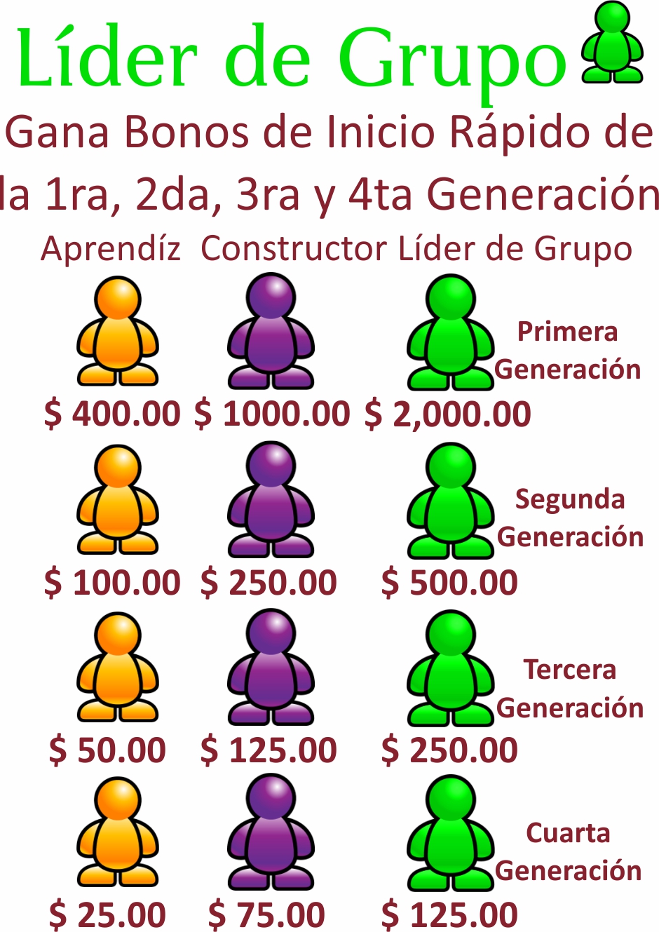 Este paquete paga bono de inicio rápido de la primera, segunda, tercera y cuarta generación de afiliados